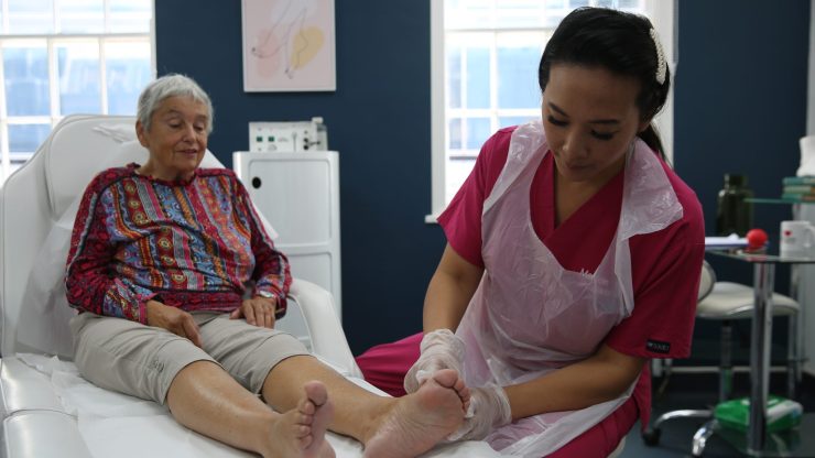Podiatrist Marion treats Elaine who's suffered childhood teasing due to her webbed feet. She's hoping surgery can put an end to 65 years of misery.