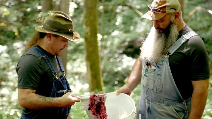 Mark and Digger cross over onto private property while rerouting a limestone creek. Mike surprises Jerry while making backwoods blueberry champagne.
